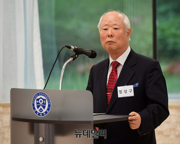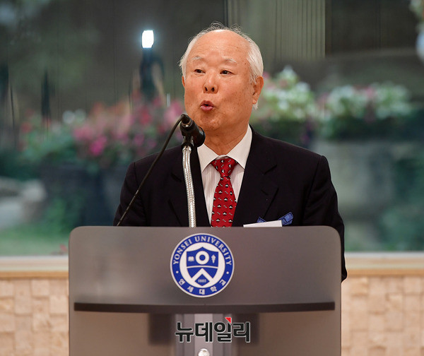 정성구 박사가 26일 오후 서울 서대문구 연세대학교 알렌관에서 열린 이승만전집 발간위원회 창립모임에서 축사를 하고 있다. 이승만전집은 2017년부터 2026년까지 이승만 박사가 남긴 모든 저작물을 수집, 편집, 교정 등의 작업을 거쳐 총 35권으로 출간할 예정이다.