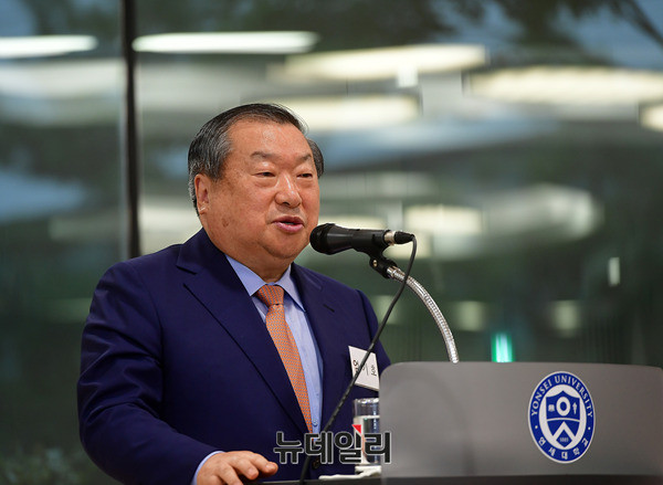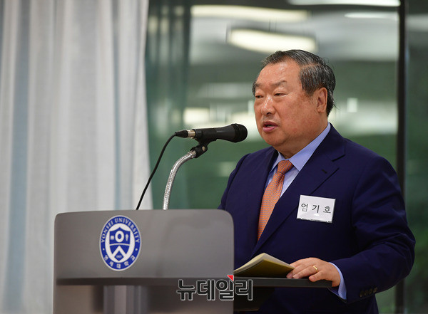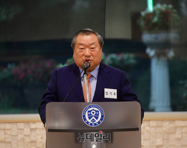 엄기호 한국기독총연합회장이 26일 오후 서울 서대문구 연세대학교 알렌관에서 열린 이승만전집 발간위원회 창립모임에서 축사를 하고 있다. 이승만전집은 2017년부터 2026년까지 이승만 박사가 남긴 모든 저작물을 수집, 편집, 교정 등의 작업을 거쳐 총 35권으로 출간할 예정이다.