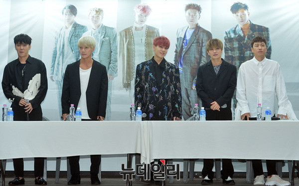 그룹 젝스키스(SECHSKIES : 은지원, 이재진, 김재덕, 강성훈, 장수원, 고지용)가 26일 오후 서울 서대문구 신촌 스타광장에서 열린 '지니뮤직스트리트 게릴라 하이터치회' 행사에 참석해포즈를 취하고 있다.