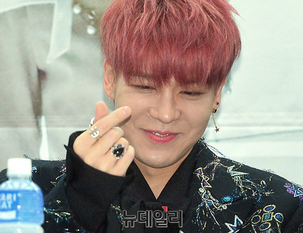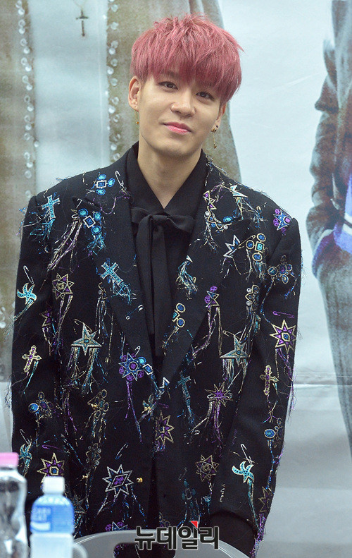 그룹 젝스키스(SECHSKIES : 은지원, 이재진, 김재덕, 강성훈, 장수원, 고지용) 강성훈이 26일 오후 서울 서대문구 신촌 스타광장에서 열린 '지니뮤직스트리트 게릴라 하이터치회' 행사에 참석해 질문에 답하고 있다.