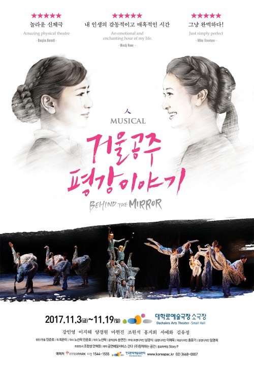 뮤지컬 '거울공주 평강이야기'는 11월 3일부터 19일까지 대학로예술극장 소극장에서 공연되며, 10월 10일 오후 2시 티켓을 오픈을 앞두고 있다. 10~31일 예매하는 관객들에게 조기 할인 40% 혜택을 제공한다. 문의 02-744-4331.