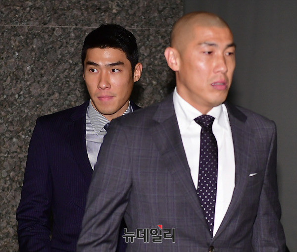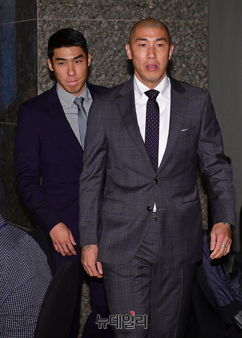 차범근, 차두리, 차세찌가 27일 서울 중구 더플라자호텔에서 열린 '코카-콜라와 함께 하는 2018 평창동계올림픽, 성화봉송으로 하나되는 순간' 행사에 나란히 입장하고 있다.