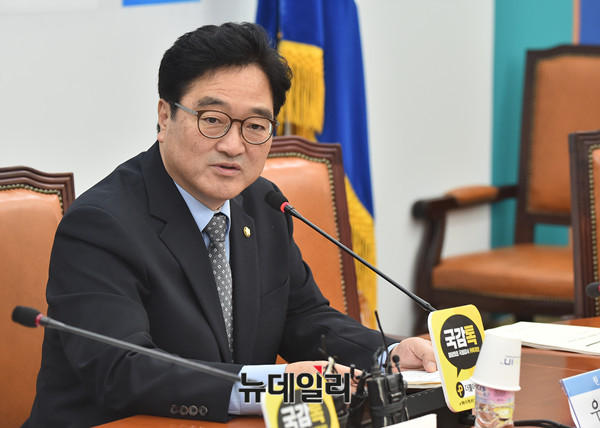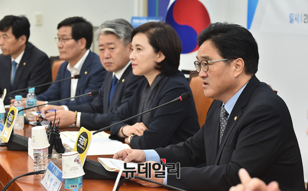 더불어민주당 우원식 원내대표가 28일 오전 국회에서 공교육 및 대입제도 개선 TF 주최로 열린 '학생부종합전형 문제점과 개선 방안' 회의에서 발언을 하고 있다.