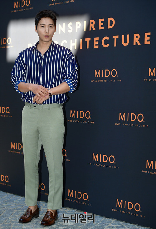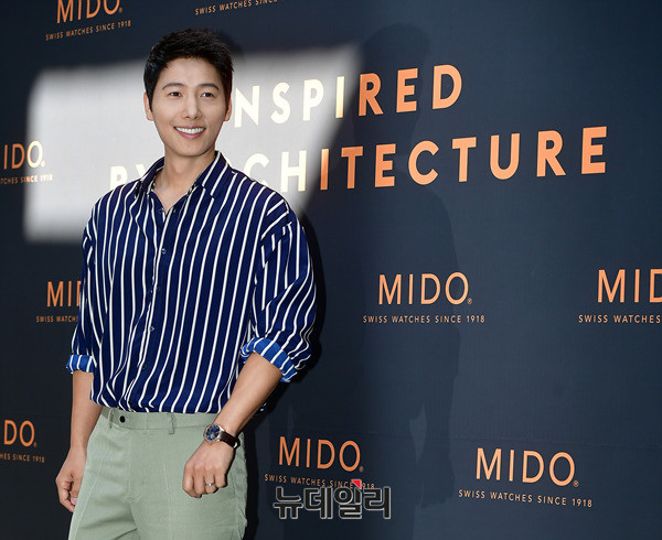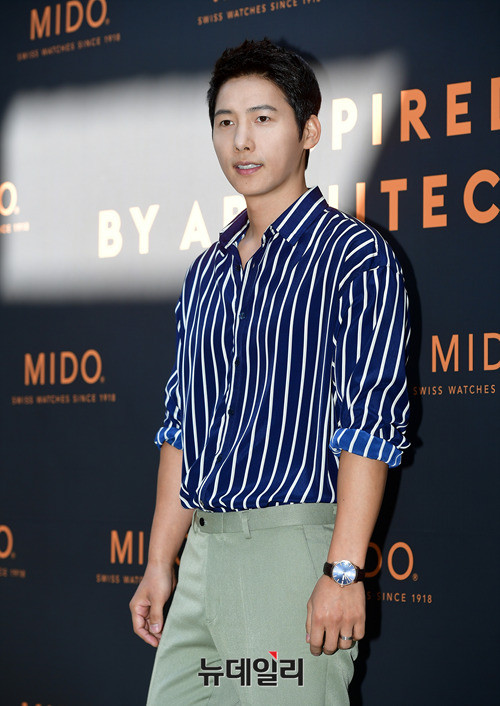 배우 이상우가 28일 오후 서울 강남구 모스스튜디오에서 열린 '2017 미도(MIDO) 미니 바젤 프레스 프레젠테이션' 행사에 참석해 포토타임을 갖고 있다.