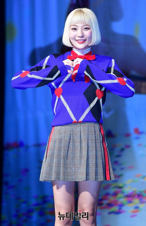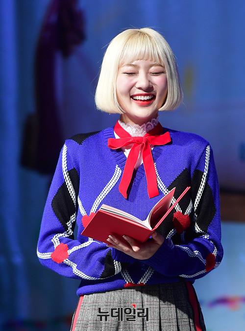여성 듀오 볼빨간사춘기의 안지영이 28일 오후 서울 강남구 상상아트홀에서 열린 미니앨범 'Red Diary Page.1(레드 다이어리 페이지원)' 쇼케이스에서 포토타임을 갖고 있다.