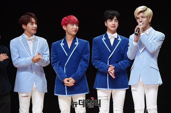 아이돌그룹 언더독이 29일 오후 서울 강남구 강남구민회관에서 열린 이파니의 새 앨범 '리얼 공감' 쇼케이스에서 참석해 축하 인사말을 전하고 있다.