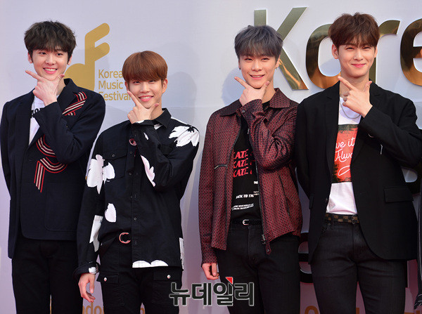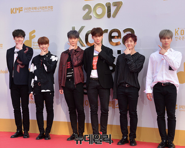 그룹 아스트로 (ASTRO : 차은우, 문빈, MJ, 진진, 라키, 윤산하)가 30일 오후 서울 구로구 고척스카이돔에서 열린 '팬덤스쿨 2017 코리아뮤직페스티벌'에 참석해 포토타임을 갖고 있다. 이날 행사에는 레이디스코드, 손승연, 에이프릴, 구구단, 모모랜드 등이 참석했다.