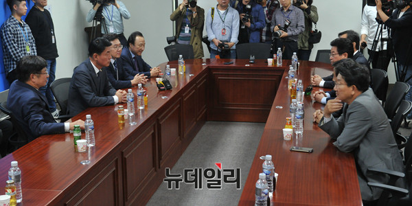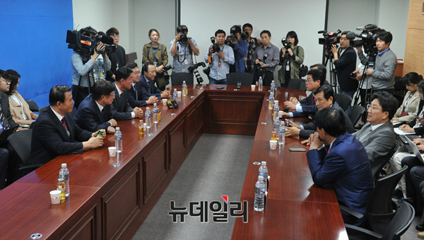 [포토] 보수대통합 놓고 한자리에 모인 자유한국당-바른정당