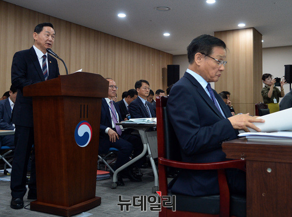 이날 국정감사에는 김상곤 사회부총리 겸 교육부 장관, 조광 국사편찬위원장, 국회 교육문화체육관광위원 등이 참석했다. (세종=뉴데일리 공준표 기자)