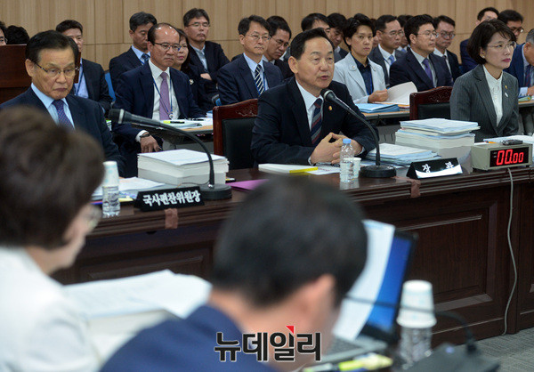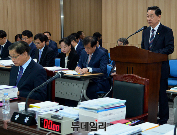 이날 국정감사에는 김상곤 사회부총리 겸 교육부 장관, 조광 국사편찬위원장, 국회 교육문화체육관광위원 등이 참석했다. (세종=뉴데일리 공준표 기자)