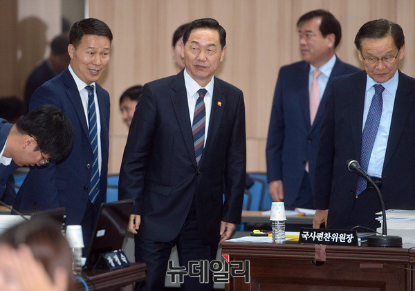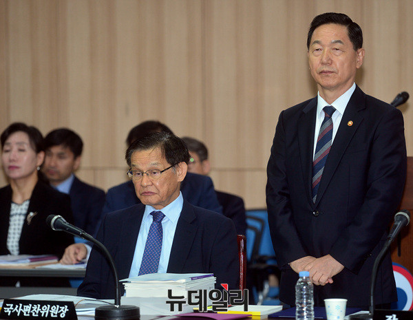 이날 국정감사에는 김상곤 사회부총리 겸 교육부 장관, 조광 국사편찬위원장, 국회 교육문화체육관광위원 등이 참석했다. (세종=뉴데일리 공준표 기자)