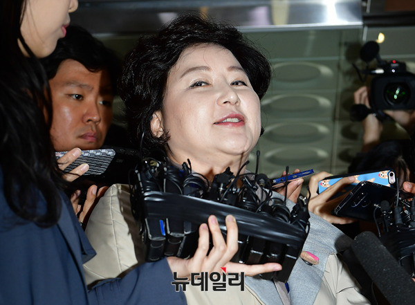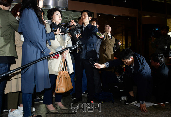 10년 전 고(故) 김광석의 외동딸 서연 양이 사망한 사건과 관련, '유기 치사' 등의 혐의로 고발된 김광석의 아내 서해순씨가 조사를 받기 위해 12일 오후 서울지방경찰청에 출석해 취재진들의 질문에 답하고 있다.