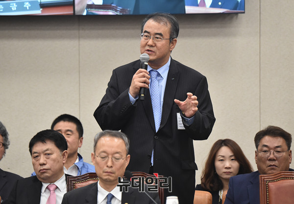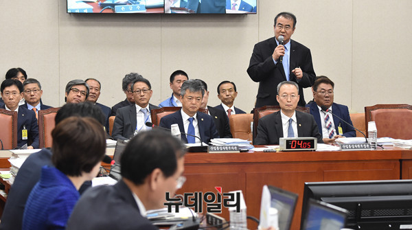 나지용 두산중공업 부회장 12일 국회에서 열린 산업통상자원중소벤처기업위원회 국정감사에 증인으로 출석해 의원들의 질문에 답하고 있다.