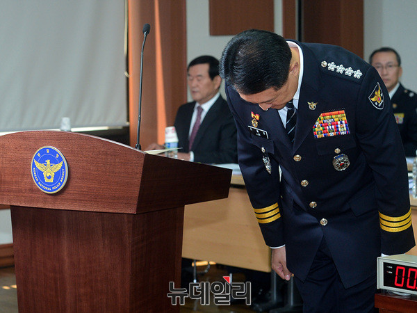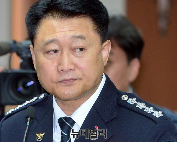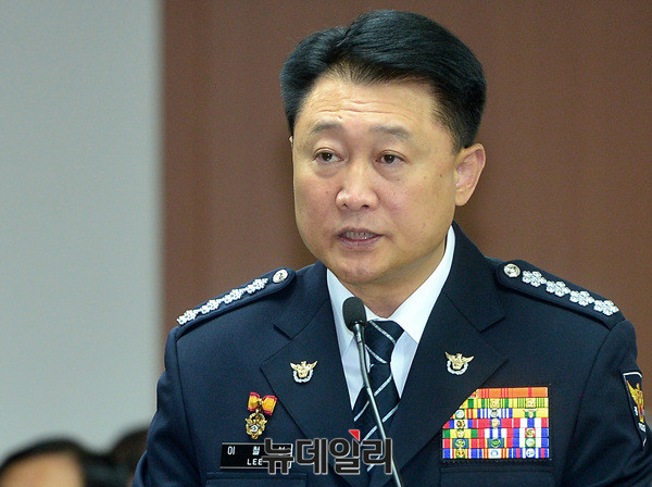 이철성 경찰청장이 13일 오전 서울 서대문구 경찰청에서 열린 국회 행정안전위원회 국정감사에 출석해 업무보고를 하고 있다. 이날 국정감사는 경찰개혁위원회 관련 증인 출석 및 자료 제출 문제를 여야 합의 보지 못해 파행됐다.