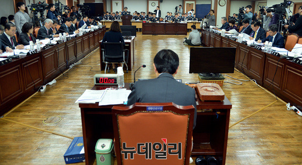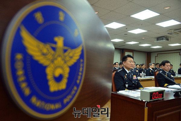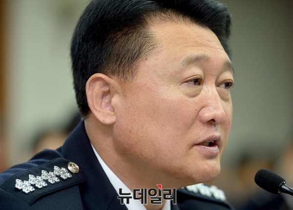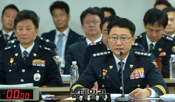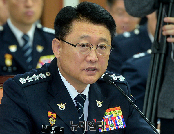 이철성 경찰청장이 13일 오전 서울 서대문구 경찰청에서 열린 국회 행정안전위원회 국정감사에 출석해 질문에 답하고 있다.이날 국정감사는 경찰개혁위원회 관련 증인 출석 및 자료 제출 문제를 여야 합의 보지 못해 파행됐다.