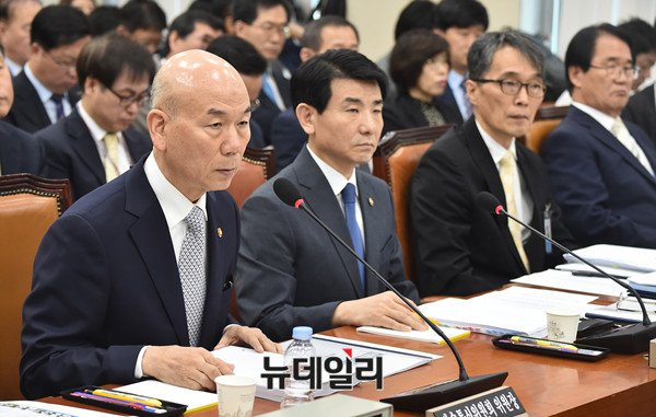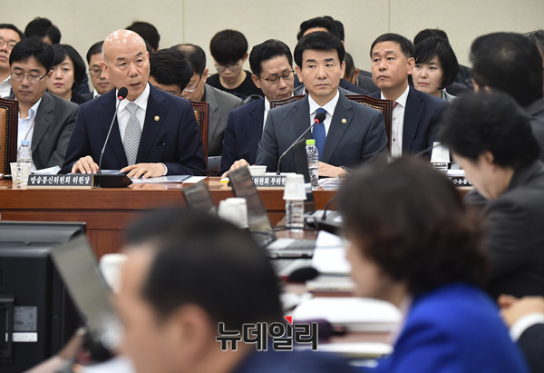이효성 방송통신위원장이 13일 오전 국회 과학기술정보방송통신위원회의 방송통신위원회 국정감사에서 의원들의 질문에 답하고 있다.