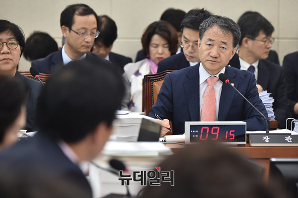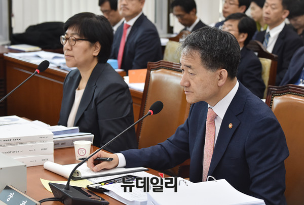 박능후 보건복지부 장관이 13일 오전 국회에서 열린 보건복지위원회 보건복지부, 질병관리본부 등의 국정감사에서 의원들의 질문에 답하고 있다.