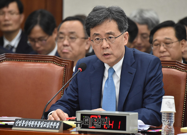 김현종 통상교섭본부장이 13일 오전 국회에서 열린 국회 산업통상자원중소벤처기업위원회의 산업통상자원부에 대한 국정감사에서 의원들의 질문에 답하고 있다.