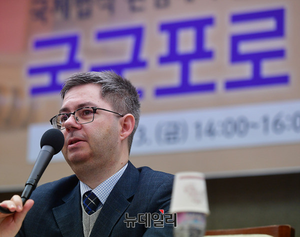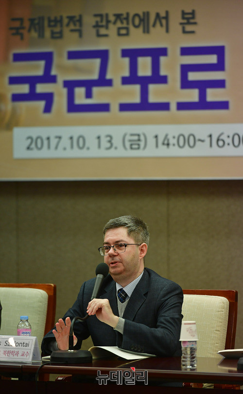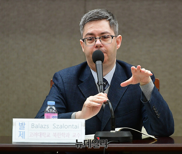 '샬론 타이(Balazs Szalontai)' 고려대 북한학과 교수가 13일 오후 서울 중구 한국프레스센터에서 열린 물망초 인권세미나에서 '북한에 남아있는 국군포로와 그들의 송환 가능성 : 국제 비교적 관점에서'를 주제로 발표하고 있다.
