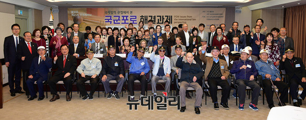 박선영 사단법인 물망초 이사장, 귀환국군용사를 비롯한 세미나 참석자들이 13일 오후 서울 중구 한국프레스센터에서 물망초 인권세미나에 앞서 기념촬영을 하고 있다.