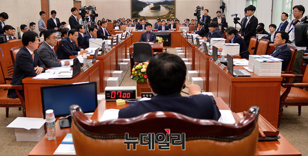 이날 국정감사는 지난 12일 임종석 대통령 비서실장이 제기한 세월호 보고 시간 조작 의혹으로 여야가 공방을 벌이다 정회됐다.