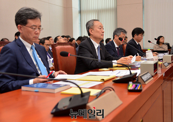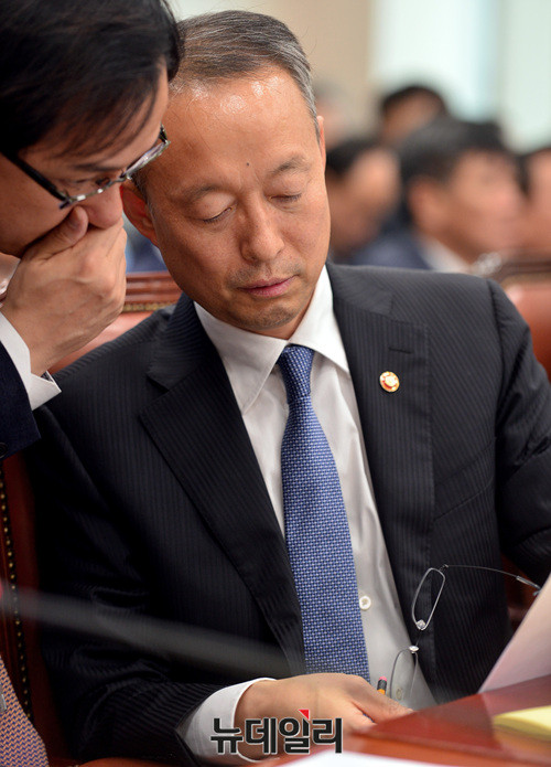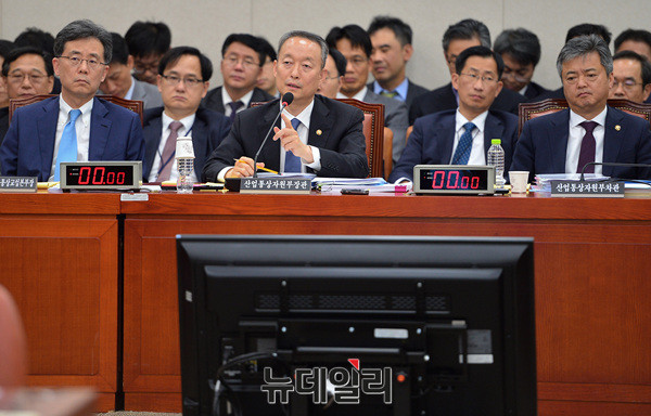 백운규 산업통상자원부 장관이 13일 오후 국회에서 열린 국회 산업통상중소벤처기업위원회 국정감사 에서 자료를 검토하고 있다. 이날 국정감사는 한미FTA와 중국의 사드보복 등에 대한 정부의 전략부재를 중점으로 진행됐다.