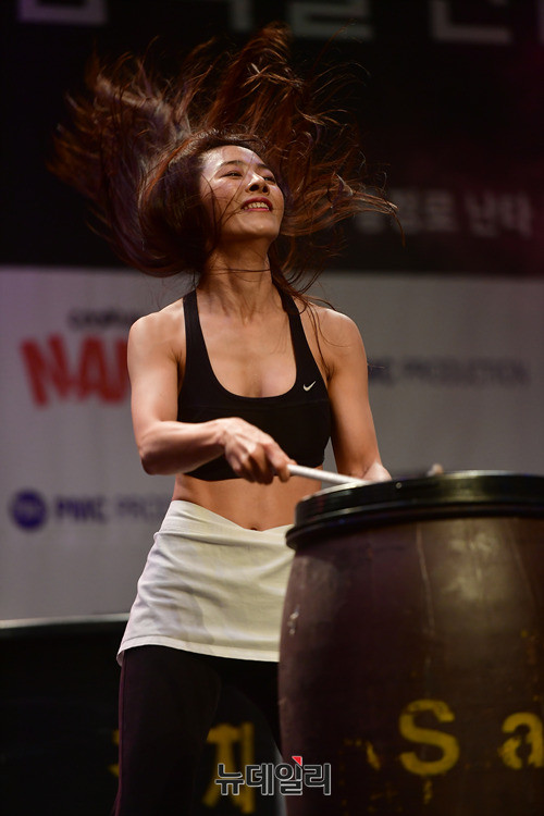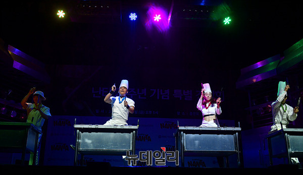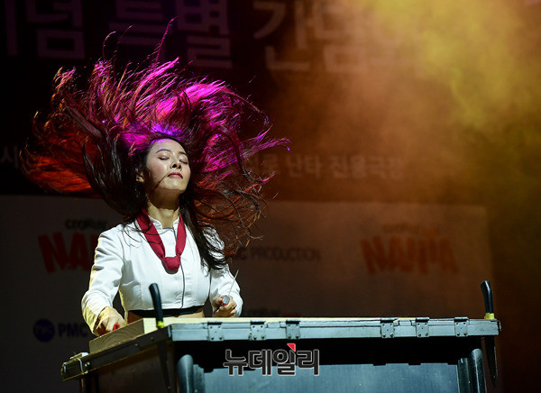 배우 이은지가 13일 오후 서울 서대문구 충정로난타극장에서 열린 난타 20주년 기념 특별 간담회에서 축하공연을 하고 있다. 이날 간담회에는 난타 초창기 배우 김문수, 김원해, 장혁진, 류승룡이 참석했다. 넌버벌 퍼포먼스 '난타'는 1997년 10월 10일 호암아트홀에서 첫 공연을 시작한 지 20년이 됐다.
