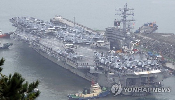 연합뉴스에 따르면 한미 양국이 한반도 해상에서 미국의 핵 추진 항공모함과 잠수함 등이 참가하는 연합훈련에 돌입했다. 이번 훈련은 16일부터 오는 20일까지 진행된다.미국은 해당 훈련을 위해 핵추진 항공모함인 로널드 레이건호 항모강습단을 참가시켰으며, 우리 해군은 이지스 구축함인 세종대왕함을 비롯한 수상함·잠수함등을 투입했다.훈련에 참가한 레이건호는 길이 333m, 배수량 10만2천t으로 축구장 3개 넓이의 갑판을 가지고 있다. 보유 전력으로는 슈퍼호넷(F/A-18) 전투기, 그라울러 전자전기(EA-18G), 공중조기경보기(E-2C)를 비롯한 각종 항공기 70여 대가 탑재돼있다.레이건호와 함께 움직이는 항모강습단은 이지스 구축함과 미사일 순양함, 군수 지원함, 핵 추진 잠수함 등으로 구성됐다.또 미국은 FA-18 전폭기·MH-60R 시호크 대잠헬기·AH-64E(아파치) 공격헬기·A-10 선더볼트 대전차 공격기 등의 전력도 훈련에 참가시키면서 화력을 더했다.우리 측은 P-3 해상초계기와 링스(Lynx)·AW-159(와일드캣) 해상작전헬기·UH-60 헬기를 비롯한 공군의 F-15K 전투기를 투입했다.