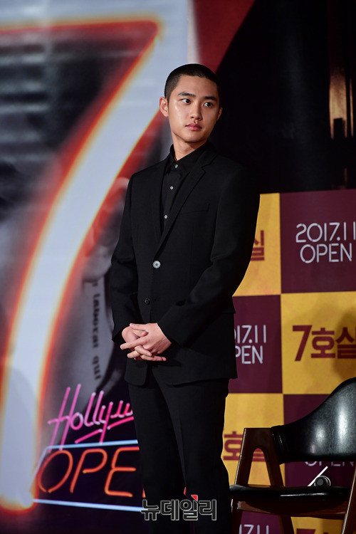 도경수가 16일 오전 서울 광진구 롯데시네마 건대입구에서 열린 영화 '7호실(감독 이용승)' 제작보고회에 입장하고 있다. 도경수는 학자금을 갚기위해 DVD방에서 일하는 알바생 태정 역을 맡았다. 오는 11월 개봉 예정.
