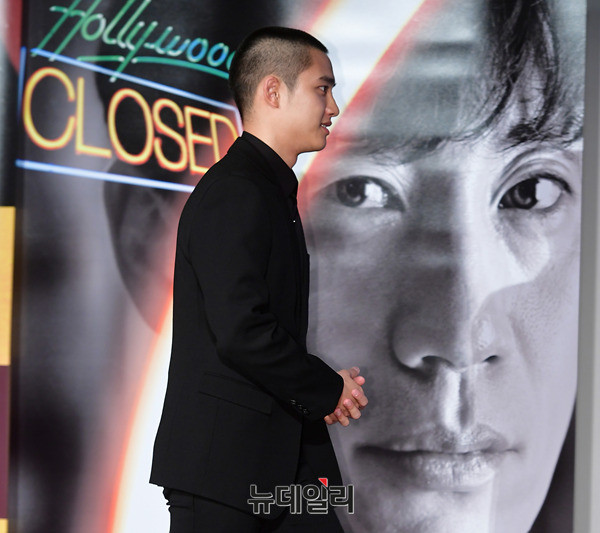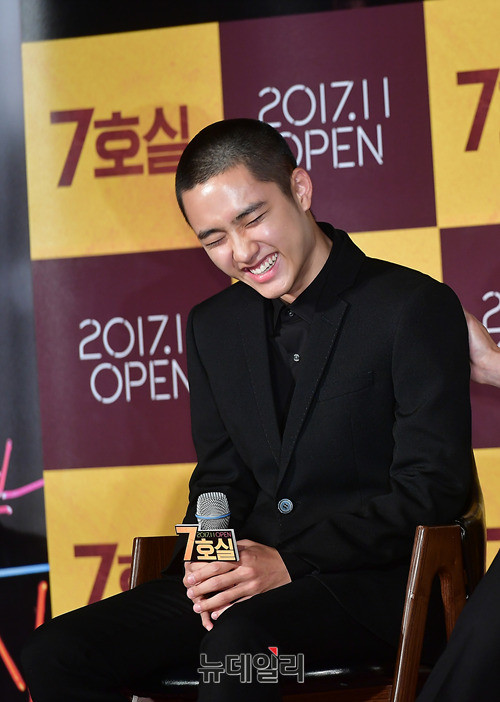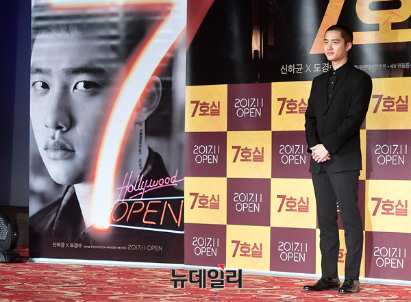 도경수가 16일 오전 서울 광진구 롯데시네마 건대입구에서 열린 영화 '7호실(감독 이용승)' 제작보고회에서 포토타임을 갖고 있다. 도경수는 학자금을 갚기위해 DVD방에서 일하는 알바생 태정 역을 맡았다. 오는 11월 개봉 예정.