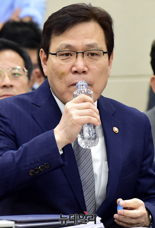 최종구 금융위원장이 16일 오전 국회에서 열린 국회 정무위원회 국정감사에서 물을 마시고 있다.
