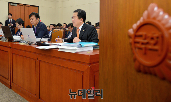 황수경 통계청장, 김영문 관세청장, 박춘섭 조달청장이 16일 오전 국회에서 열린 국회 기획재정위원회 국정감사에서 의원들의 질문을 듣고 있다.