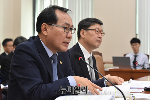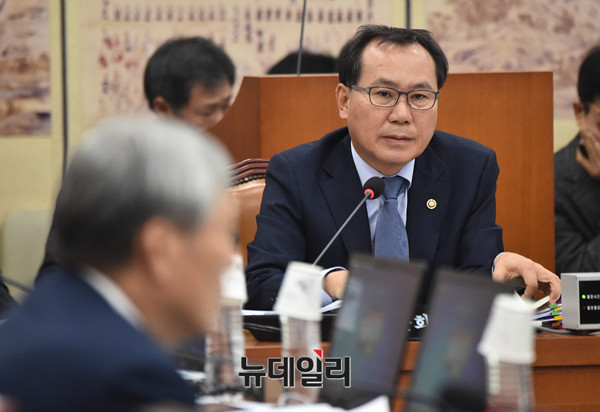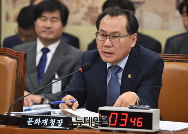 김종진 문화재청장이 16일 오전 국회에서 열린 교육문화체육관광위원회 문화재청에 대한 국정감사에서 의원들 질문에 답하고 있다.