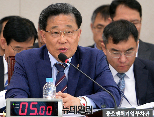 최수규 중소벤처기업부 차관이 16일 오전 국회에서 열린 국회 산업통상자원중소벤처기업위원회 국정감사에 참석해 질문에 답하고 있다.