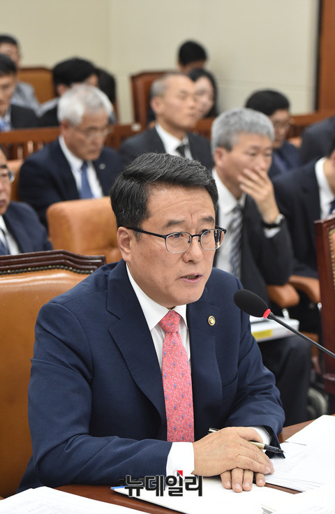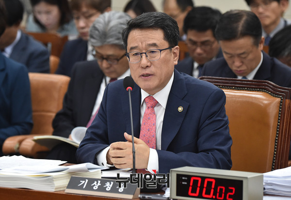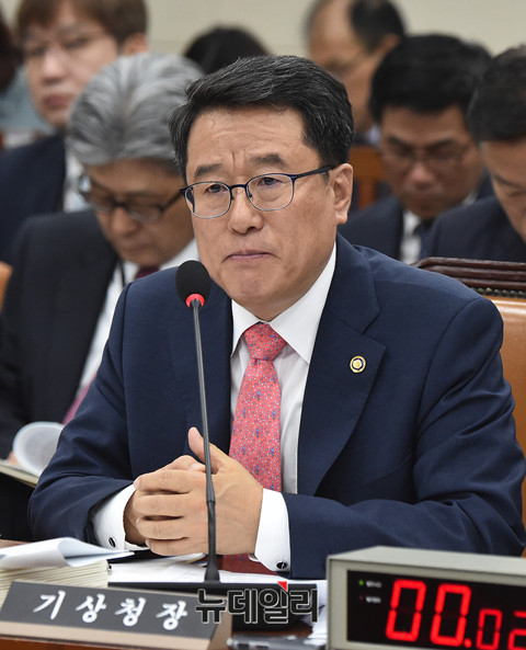 남재철 기상청장이 17일 오전 국회에서 열린 환경노동위원회의 기상청에 대한 국정감사에서 의원들의 질문에 답하고 있다.