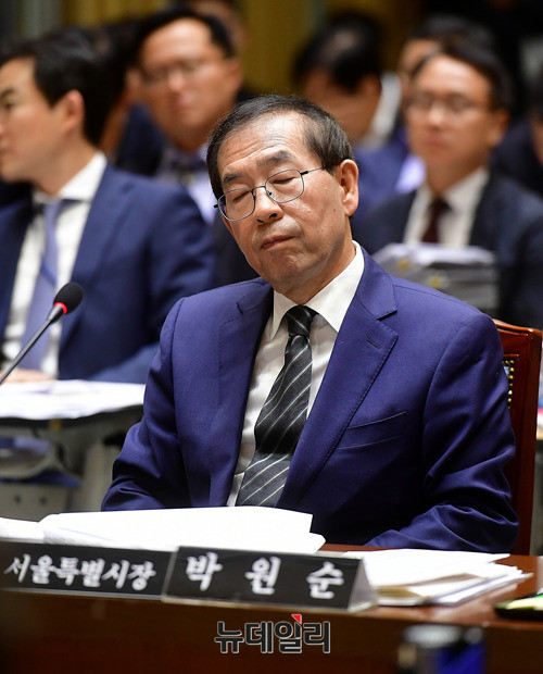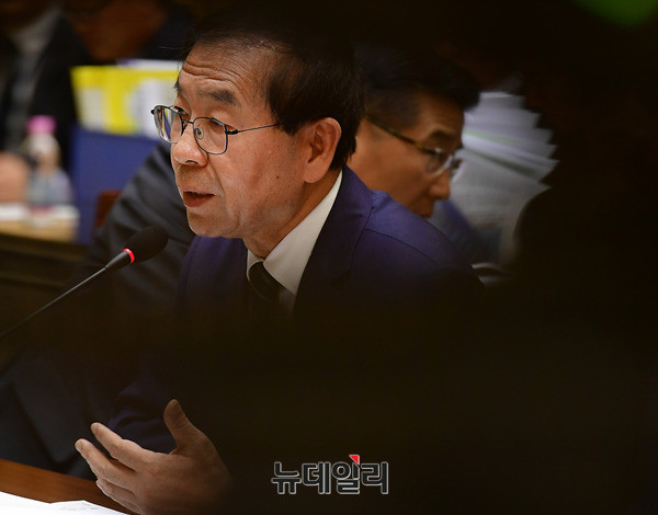 박원순 서울시장이 17일 오후 서울시청에서 열린 국회 행정안전위원회의 서울시 국정감사에서 질의에 답하고 있다.