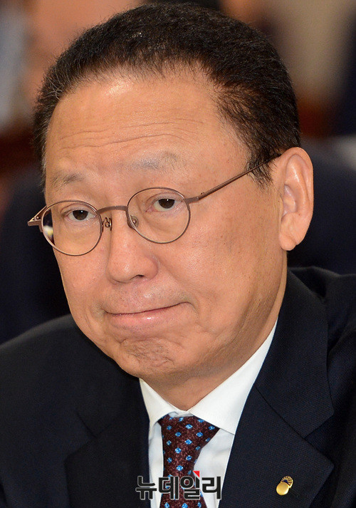 최흥식 금융감독원장이 17일 오전 서울 여의도 금융감독원에서 열린 국회 정무위원회 국정감사에서 얼굴을 찌푸리고 있다.