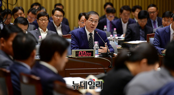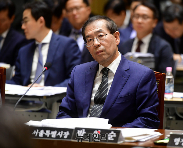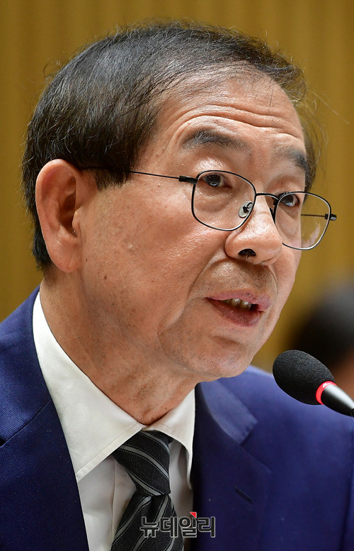 박원순 서울시장이 17일 오후 서울시청에서 열린 국회 행정안전위원회의 서울시 국정감사에서 위원들의 질의에 답하고 있다.