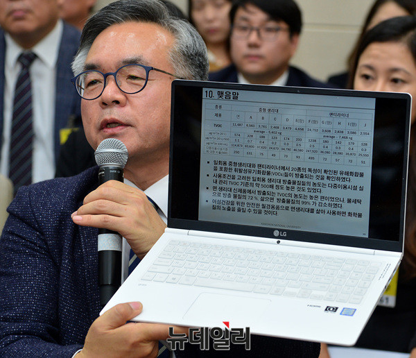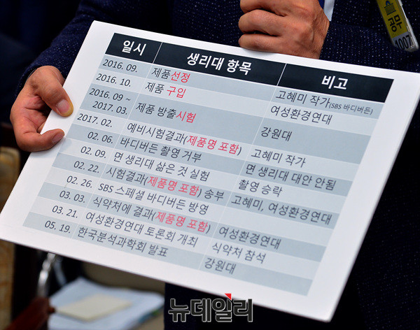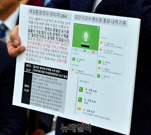 이날 국정감사는 생리대 안전성 논란과 살충제 계란을 중점으로 진행됐다.
