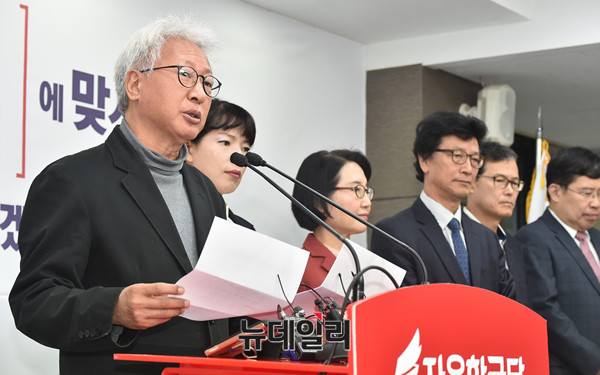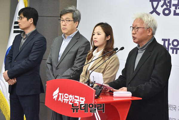 자유한국당 류석춘 혁신위원장이 18일 오전 서울 여의도 자유한국당 당사에서 제5차 혁신안을 발표하고 있다.
