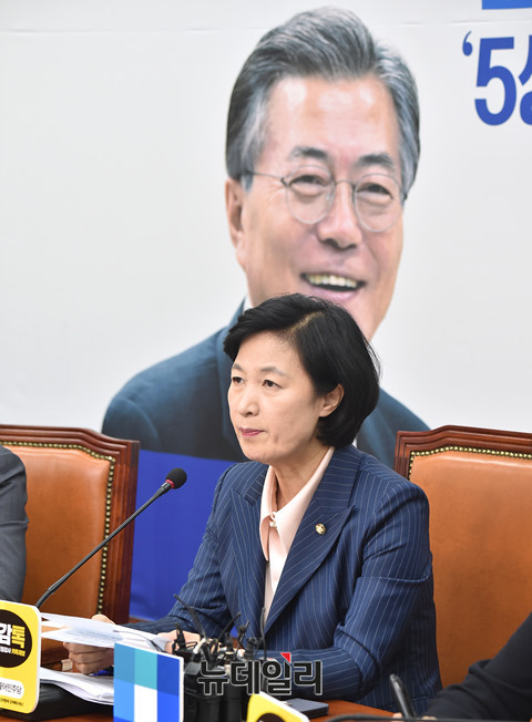 더불어민주당 추미애 대표가 18일 국회 당대표실에서 열린 최고위원회의에서 모두 발언을 하고 있다