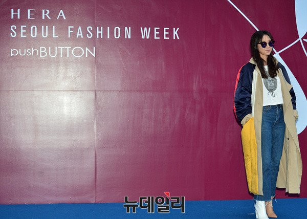 배우 공효진이 18일 오후 서울 동대문 동대문디자인플라자(DDP)에서 열린 '2018 S/S(봄·여름)헤라서울패션위크(HERA Seoul Fashion Week)'에서 포즈를 취하고 있다.