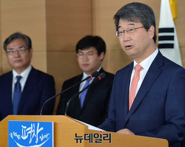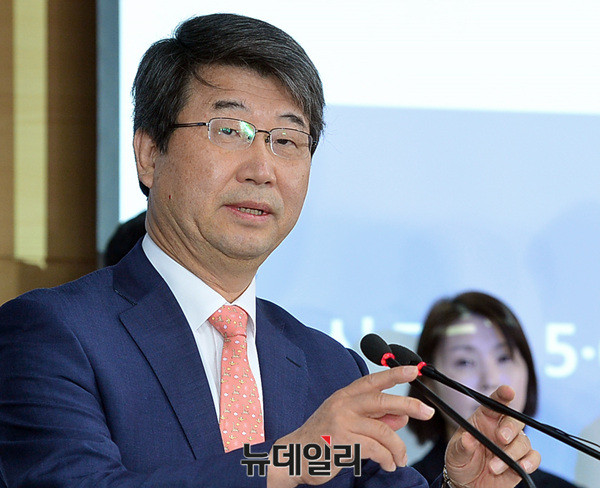 김지형 신고리 5·6호기 공론화위원장이 20일 오전 서울정부청사에서 신고리원전 5·6호기 공론조사 최종 권고안 결과를 설명하고 있다.이날 김 위원장은 "공사 재개 의견이 59.5%로 중단 40.5% 보다 많았다"고 말했다.