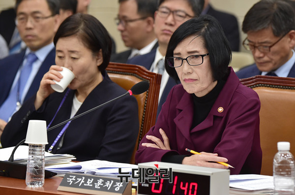 피우진 국가보훈처장이 20일 오전 국회 정무위원회의 국민권익위원회 등에 대한 국정감사에서 의원들의 질문에 답하고 있다.