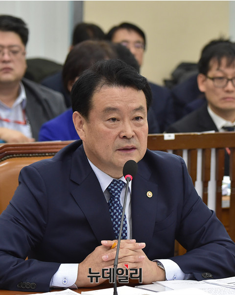 김대년 중앙선거관리위원회 사무총장이 20일 오전 국회에서 열린 행정안전위원회 국정감사에서 의원 질의에 답하고 있다.