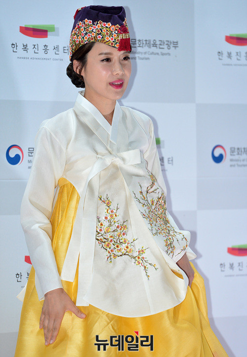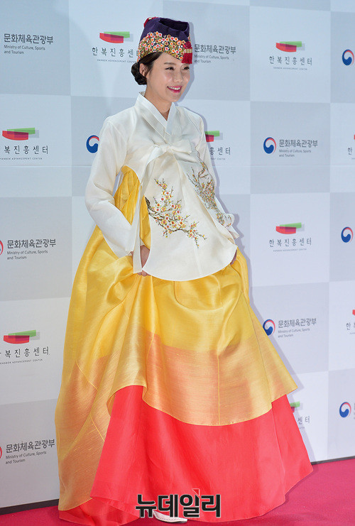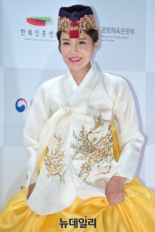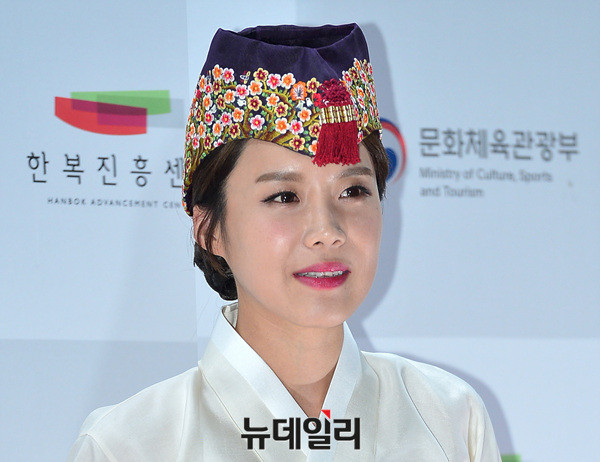 개그우먼 장도연이 20일 오후 서울 경복궁 흥례문 광장에서 열린 '2017 한복의 날 경복궁 달빛 한복패션쇼'에 참석해 포즈를 취하고 있다.