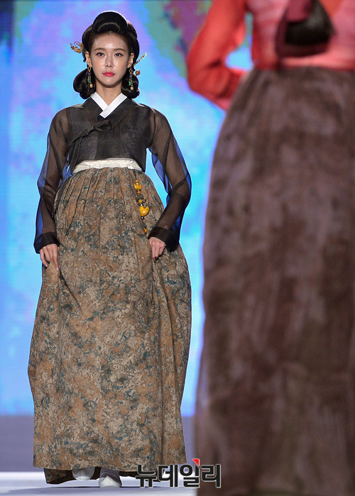 한은희 디자이너가 20일 오후 서울 경복궁 흥례문 광장에서 열린 '2017 한복의 날 경복궁 달빛 한복패션쇼'에서 '소색의끌림'을 주제로 런웨이를 펼치고 있다.