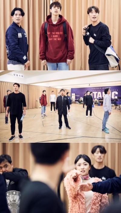한국에서의 역사적인 첫 출항을 앞둔 뮤지컬 '타이타닉'의 연습실 현장이 포착됐다.공개된 사진 속에는 '타이타닉' 공연의 막바지 연습을 위해 비장한 각오로 연습에 임하는 임혜영, 서경수, 빅스 켄, 정동화. 이희정, 김봉환 등 배우들의 모습이 담겼다.주조연·앙상블 구분 없이 전 캐릭터가 주인공인 '타이타닉'은 등장하는 대부분의 배우들이 최대 다섯 개의 배역까지 연기하는 멀티-롤(Multi-role) 뮤지컬이다. 타이타닉호에 탑승한 다양한 인간 군상을 보여주는 27명의 배우들의 모습은 넓은 연습실을 가득 채웠다.뮤지컬 '타이타닉'은 1912년 4월 10일 영국 사우스햄프턴에서 출항해 항해 5일만인 15일 북대서양 바다에서 침몰한 타이타닉 호의 실화를 바탕으로 한다. 예상치 못한 비극 앞에서도 사그라지지 않았던 사랑과 용기를 담아낼 예정이다.'타이타닉'은 한국에서의 초연 후 2018년~2019년에는 브로드웨이에서의 공연을 목표로 하고 있다. 11월 10일 잠실 샤롯데씨어터에서 개막한다. 관람료 6만~14만원. 문의 1588-5212.실제 공연을 방불케 하는 뜨거운 연습 현장을 담은 '타이타닉'의 연습실 영상은 오디컴퍼니 페이스북, 인스타그램, 트위터 등 공식 SNS에서 확인할 수 있다.[사진=오디컴퍼니]