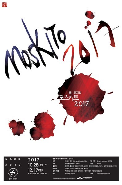 설경구, 황정민, 장현성, 신성록, 정욱진 등 스타 배우들의 등용문으로 통하는 록 뮤지컬 '모스키토'가 6년 만에 관객들을 만난다.'모스키토'는 모기처럼 기존 정당들의 부패와 부정을 마구 찌른다는 뜻에서 지어진 청소년 정당 이름이다.유권자가 중학생으로 확대되고 청소년들이 직접 당을 창당하는 가상의 상황을 통해 정치권의 위선, 사학 비리 등 현실적인 문제를 날카롭게 포착해 무대 위로 옮겨낸 작품이다.1997년 초연 된 이후 1999년·2000년·2004년에는 '모스키토'로, 2009년·2010년·2011년에는 '굿모닝 학교'로 공연된 바 있다.이번 '모스키토 2017'은 김민기 학전 대표가 연출·가사·극본(대표집필)을 맡아 두 가지 버전을 수정 보완해 새롭게 엮어냈다. 뮤지션 정재일이 작곡과 편곡을 맡아 감각적이고 세련된 음악을 선보인다.1인 다역을 맡은 11명의 배우들은 각기 다른 개성을 지닌 캐릭터를 입체적으로 표현하며 작품의 완성도를 높인다. 여기에 기타, 베이스, 키보드로 구성된 4인조 록밴드의 라이브 음악은 무대를 빈틈없이 꽉 채운다.뮤지컬 '모스키토 2017'은 10월 28일부터 12월 17일까지 학전블루 소극장에서 공연된다. 프리뷰 기간인 10월 28~11월 3일에는 40% 할인된 가격인 1만5천원에 예매할 수 있다. 전석 2만5천원. 문의 02-763-8233.[사진=학전]