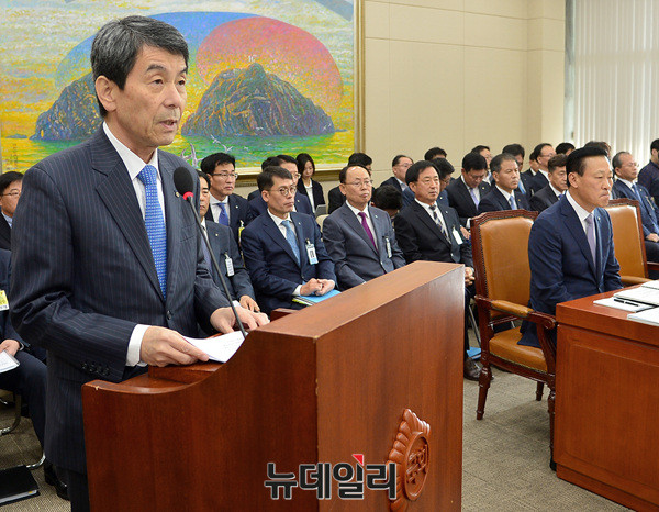 이동걸 산업은행회장이 23일 오전 국회에서 열린 국회 정무위원회의 한국산업은행, 중소기업은행 등에 대한 국정감사에서 업무보고를 하고 있다.